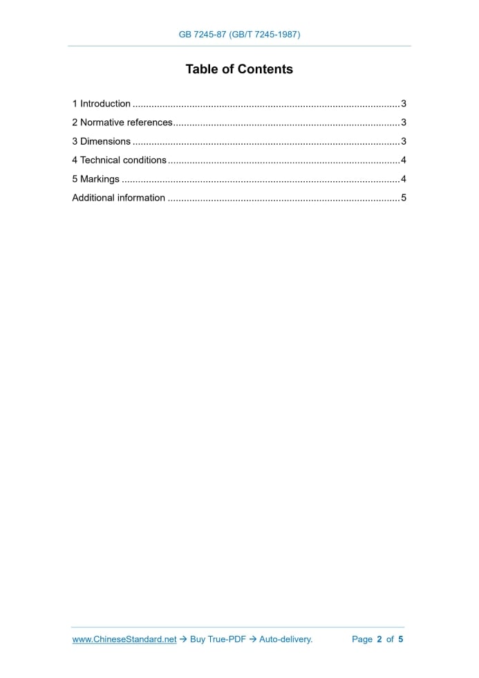 Similar standardsGB/T 7245-1987: Curved single coil spring lock washers---This is an excerpt. Full copy of true-PDF in English version (including equations, symbols, images, flow-chart, tables, and figures etc.), auto-downloaded/delivered in 9 seconds, can be purchased online: https://www.ChineseStandard.net/PDF.aspx/GBT7245-1987GB NATIONAL STANDARD OF THE PEOPLE’S REPUBLIC OF CHINA UDC 621.882.4 GB 7245-87 Curved single coil spring lock washers 鞍形弹簧垫圈 Issued on: FEBRUARY 05, 1987 Implemented on: FEBRUARY 01, 1988 Issued by. National Bureau of Standards Table of Contents1 Introduction... 3 2 Normative references... 3 3 Dimensions... 3 4 Technical conditions... 4 5 Markings... 4 Additional information... 5 Curved single coil spring lock washers1 IntroductionThis standard specifies curved single coil spring lock washers, which have a specification of 3 ~ 30 mm. It can be applied to right-hand and left-hand threads.2 Normative referencesGB 94.1-87 Specification for spring washers - Single coil lock washers.3 Dimensions......Source: Above contents are excerpted from the full-copy PDF -- translated/reviewed by: www.ChineseStandard.net / Wayne Zheng et al. Tips & Frequently Asked Questions:Question 1: How long will the true-PDF of English version of GB/T 7245-1987 be delivered?Answer: The full copy PDF of English version of GB/T 7245-1987 can be downloaded in 9 seconds, and it will also be emailed to you in 9 seconds (double mechanisms to ensure the delivery reliably), with PDF-invoice.Question 2: Can I share the purchased PDF of GB/T 7245-1987_English with my colleagues?Answer: Yes. The purchased PDF of GB/T 7245-1987_English will be deemed to be sold to your employer/organization who actually paid for it, including your colleagues and your employer's intranet.Question 3: Does the price include tax/VAT?Answer: Yes. Our tax invoice, downloaded/delivered in 9 seconds, includes all tax/VAT and complies with 100+ countries' tax regulations (tax exempted in 100+ countries) -- See Avoidance of Double Taxation Agreements (DTAs): List of DTAs signed between Singapore and 100+ countriesQuestion 4: Do you accept my currency other than USD?Answer: Yes. www.ChineseStandard.us -- GB/T 7245-1987 -- Click this link and select your country/currency to pay, the exact amount in your currency will be printed on the invoice. Full PDF will also be downloaded/emailed in 9 seconds.How to buy and download a true PDF of English version of GB/T 7245-1987?A step-by-step guide to download PDF of GB/T 7245-1987_EnglishStep 1: Visit website https://www.ChineseStandard.net (Pay in USD), or https://www.ChineseStandard.us (Pay in any currencies such as Euro, KRW, JPY, AUD).Step 2: Search keyword "GB/T 7245-1987". Step 3: Click "Add to Cart". If multiple PDFs are required, repeat steps 2 and 3 to add up to 12 PDFs to cart. Step 4: Select payment option (Via payment agents Stripe or PayPal). Step 5: Customize Tax Invoice -- Fill up your email etc. Step 6: Click "Checkout". Step 7: Make payment by credit card, PayPal, Google Pay etc. After the payment is completed and in 9 seconds, you will receive 2 emails attached with the purchased PDFs and PDF-invoice, respectively. Step 8: Optional -- Go to download PDF. Step 9: Optional -- Click Open/Download PDF to download PDFs and invoice. See screenshots for above steps: Steps 1~3 Steps 4~6 Step 7 Step 8 Step 9 |