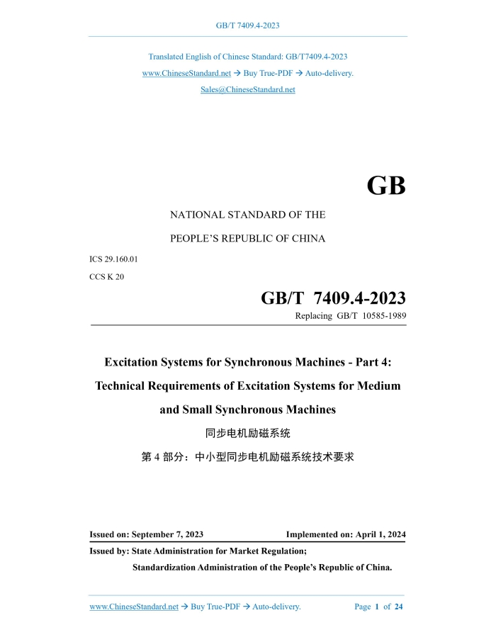 GB/T 7409.4-2023: Excitation systems for synchronous machines - Part 4: Technical requirements of excitation systems for medium and small synchronous machines Delivery: 9 seconds. True-PDF full-copy in English & invoice will be downloaded + auto-delivered via email. See step-by-step procedure Status: Valid