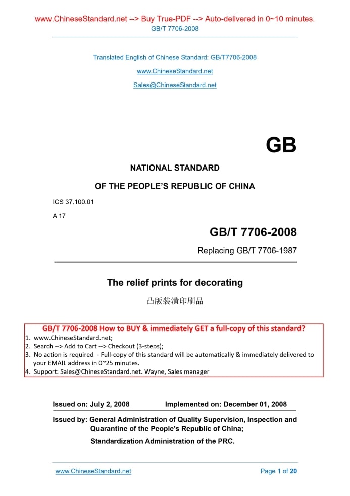GB/T 7706-2008: The relief prints for decorating Delivery: 9 seconds. True-PDF full-copy in English & invoice will be downloaded + auto-delivered via email. See step-by-step procedure Status: Valid GB/T 7706: Historical versions