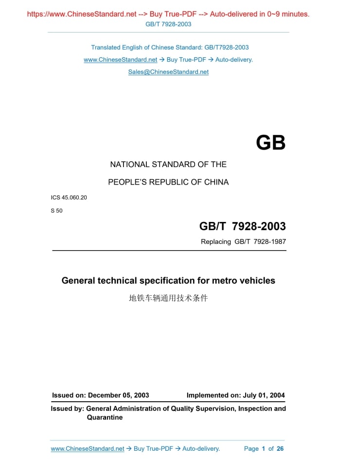 GB/T 7928-2003: General technical specification for metro vehicles Delivery: 9 seconds. True-PDF full-copy in English & invoice will be downloaded + auto-delivered via email. See step-by-step procedure Status: Valid GB/T 7928: Historical versions