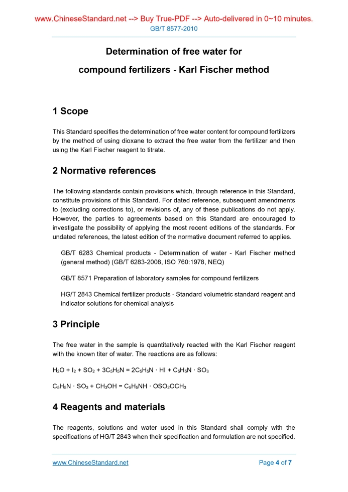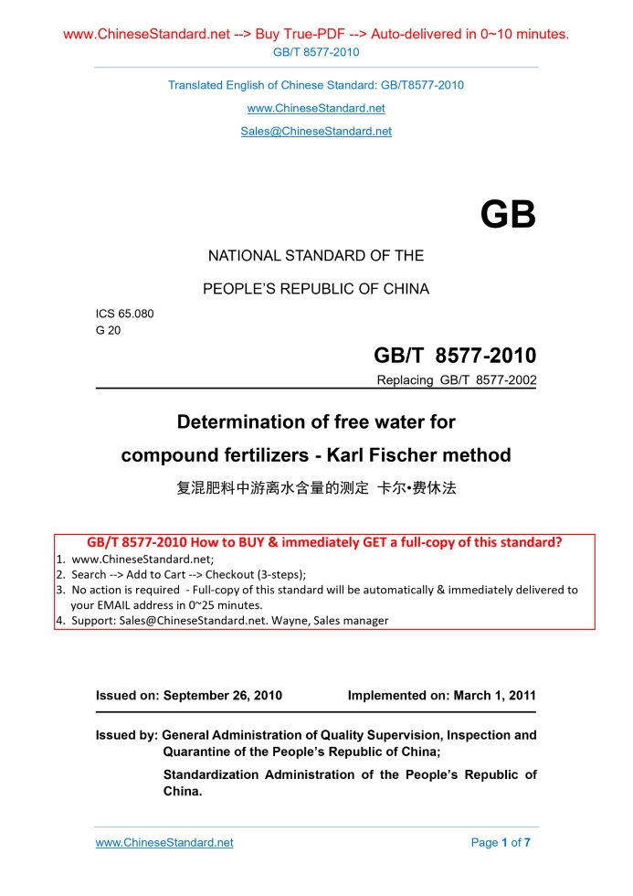 GB/T 8577-2010: Determination of free water for compound fertilizers -- Karl Fischer method Delivery: 9 seconds. True-PDF full-copy in English & invoice will be downloaded + auto-delivered via email. See step-by-step procedure Status: Valid GB/T 8577: Historical versions