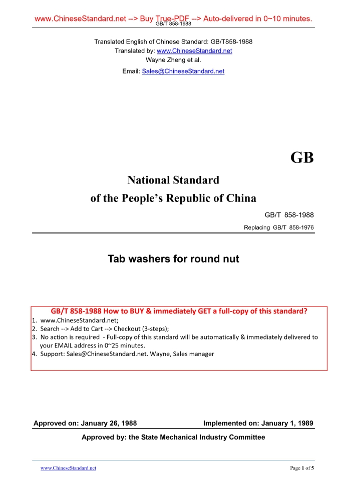 GB/T 858-1988: Tab washers for round nut Delivery: 9 seconds. True-PDF full-copy in English & invoice will be downloaded + auto-delivered via email. See step-by-step procedure