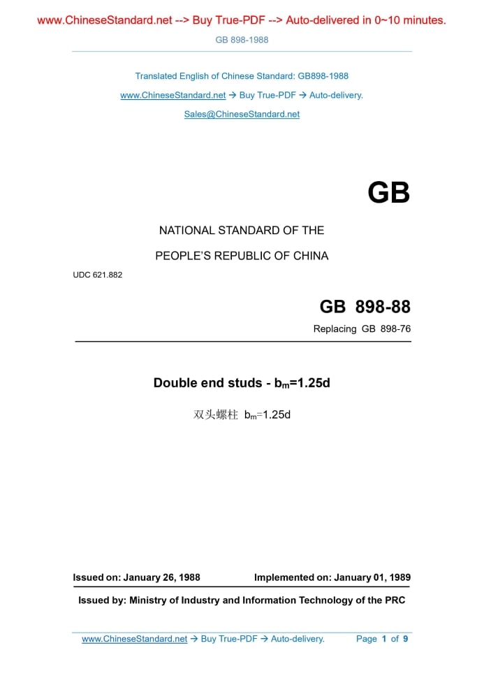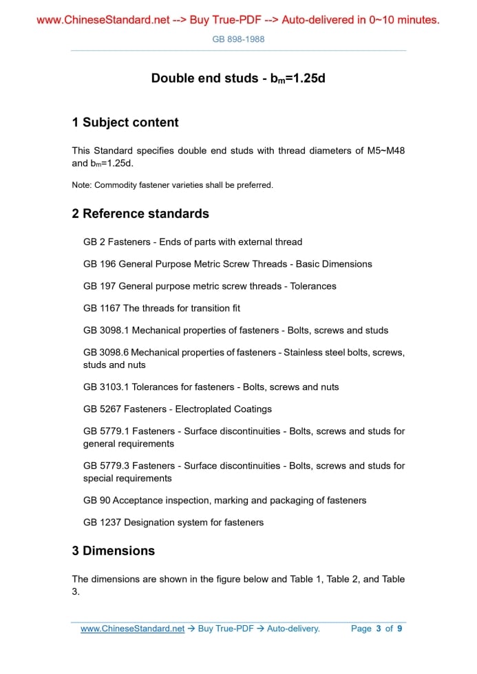 GB/T 898-1988: Double end studs. bm=1.25d Delivery: 9 seconds. True-PDF full-copy in English & invoice will be downloaded + auto-delivered via email. See step-by-step procedure