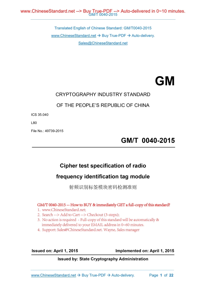 GM/T 0040-2024 (GM/T 0040-2015) PDF EnglishUS$150.00 · In stock · Download in 9 seconds