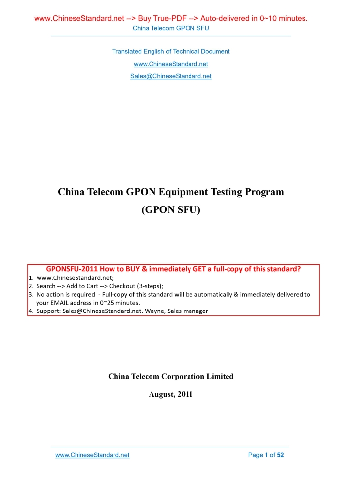 GPONSFU-2011: China Telecom GPON equipment testing program [GPON SFU, Part ONU] Delivery: 9 seconds. True-PDF full-copy in English & invoice will be downloaded + auto-delivered via email. See step-by-step procedure