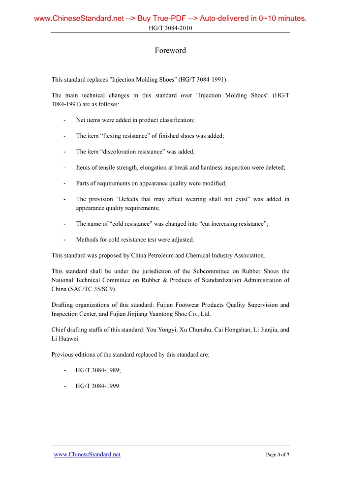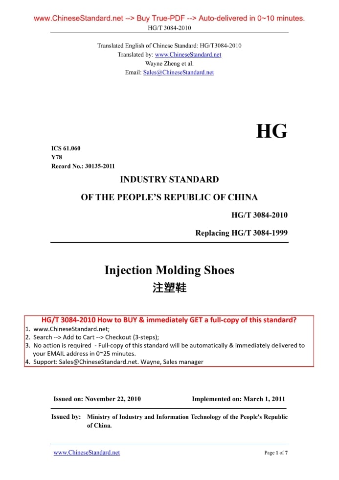 HG/T 3084-2010: Injection molding shoes Delivery: 9 seconds. True-PDF full-copy in English & invoice will be downloaded + auto-delivered via email. See step-by-step procedure Status: Valid HG/T 3084: Historical versions