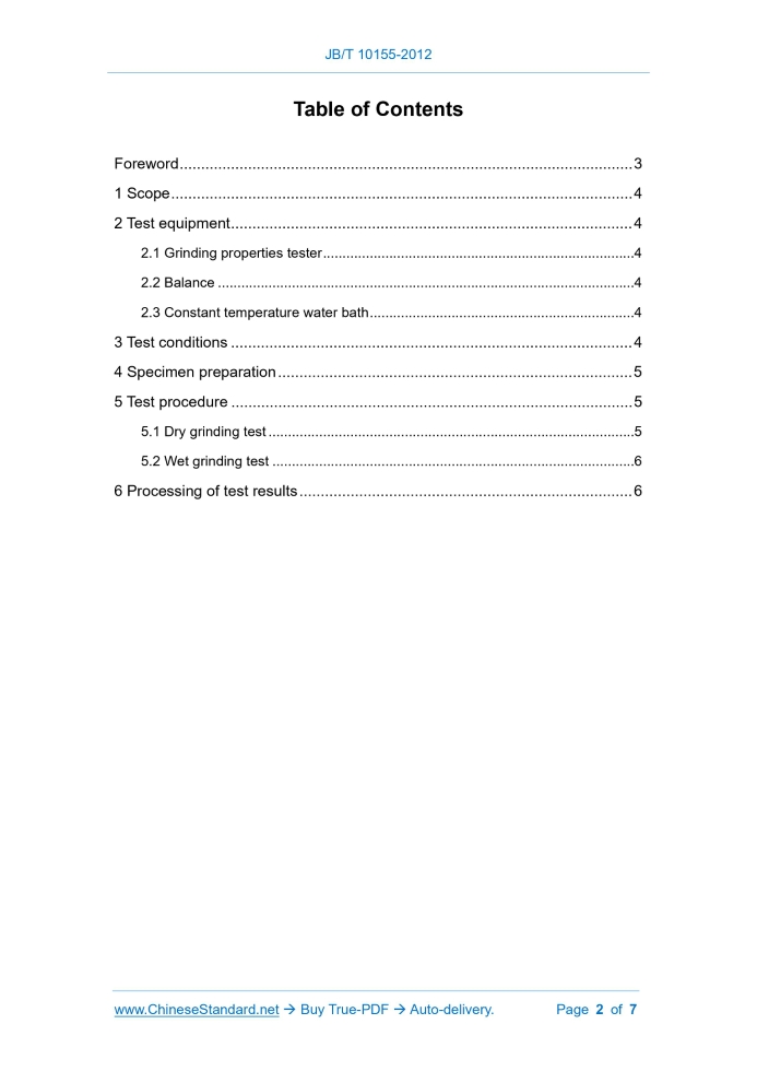 Similar standardsJB/T 10155-2012: Coated abrasives. Test method of the grinding properties of abrasive cloth and abrasive paper---This is an excerpt. Full copy of true-PDF in English version (including equations, symbols, images, flow-chart, tables, and figures etc.), auto-downloaded/delivered in 9 seconds, can be purchased online: https://www.ChineseStandard.net/PDF.aspx/JBT10155-2012 JB MACHINERY INDUSTRY STANDARD OF THE PEOPLE’S REPUBLIC OF CHINA ICS 25.100.70 J 43 File No.: 36630-2012 Replacing JB/T 10155-1999 Coated abrasives - Test method of the grinding properties of abrasive cloth and abrasive paper ISSUED ON: MAY 24, 2012 IMPLEMENTED ON: NOVEMBER 01, 2012 Issued by: Ministry of Industry and Information Technology of the People's Republic of China Table of ContentsForeword ... 3 1 Scope ... 4 2 Test equipment ... 4 2.1 Grinding properties tester ... 4 2.2 Balance ... 4 2.3 Constant temperature water bath ... 4 3 Test conditions ... 4 4 Specimen preparation ... 5 5 Test procedure ... 5 5.1 Dry grinding test ... 5 5.2 Wet grinding test ... 6 6 Processing of test results ... 6ForewordThis Standard was drafted in accordance with the rules given in GB/T 1.1-2009. This Standard replaces JB/T 10155-1999 "Coated abrasives - Test method of the grinding properties of abrasive cloth and abrasive paper". Compared with JB/T 10155-1999, the main technical changes in this Standard are as follows: - modified the type of abrasive cloth (see Table 1 of this Edition, Table 1 of Edition 1999); - added the detailed regulations for grinding time (see Table 1 of this Edition). This Standard was proposed by China Machinery Industry Federation. This Standard shall be under the jurisdiction of National Technical Committee on Abrasives of Standardization Administration of China (SAC/TC 139). The drafting organizations of this Standard: Zhengzhou Abrasives Grinding Research Institute. Main drafters of this Standard: Zhong Yanzheng, Yang Songbin, Zhang Changwu. This Standard was issued in 1999 for the first time. This is the first revision. Coated abrasives - Test method of the grinding properties of abrasive cloth and abrasive paper1 ScopeThis Standard specifies the test method of the grinding properties of abrasive cloth and abrasive paper: test equipment, test conditions, specimen preparation, test procedures and processing of test results. This Standard is applicable to abrasive cloth, abrasive paper and water- resistant abrasive paper.2 Test equipment2.1 Grinding properties tester The grinding properties tester shall meet the following requirements: a) The grinding disc end face of the grinding properties tester does not run out much 0.05 mm; b) The grinding disc speed of the grinding properties tester is (320±5) r/min; c) Grinding track: The ring inner diameter of the track is (87±0.2) mm, and the ring width is (16.5±0.4) mm. 2.2 Balance The scale of the balance is 0.01 g. 2.3 Constant temperature water bath The fluctuation of water temperature is ±2°C.3 Test conditionsThe test conditions for the grinding properties of abrasive cloth and abrasive paper shall meet the requirements in Table 1. ......Source: Above contents are excerpted from the full-copy PDF -- translated/reviewed by: www.ChineseStandard.net / Wayne Zheng et al. Tips & Frequently Asked Questions:Question 1: How long will the true-PDF of English version of JB/T 10155-2012 be delivered?Answer: The full copy PDF of English version of JB/T 10155-2012 can be downloaded in 9 seconds, and it will also be emailed to you in 9 seconds (double mechanisms to ensure the delivery reliably), with PDF-invoice.Question 2: Can I share the purchased PDF of JB/T 10155-2012_English with my colleagues?Answer: Yes. The purchased PDF of JB/T 10155-2012_English will be deemed to be sold to your employer/organization who actually paid for it, including your colleagues and your employer's intranet.Question 3: Does the price include tax/VAT?Answer: Yes. Our tax invoice, downloaded/delivered in 9 seconds, includes all tax/VAT and complies with 100+ countries' tax regulations (tax exempted in 100+ countries) -- See Avoidance of Double Taxation Agreements (DTAs): List of DTAs signed between Singapore and 100+ countriesQuestion 4: Do you accept my currency other than USD?Answer: Yes. www.ChineseStandard.us -- JB/T 10155-2012 -- Click this link and select your country/currency to pay, the exact amount in your currency will be printed on the invoice. Full PDF will also be downloaded/emailed in 9 seconds.Question 5: Should I purchase the latest version JB/T 10155-2012?Answer: Yes. Unless special scenarios such as technical constraints or academic study, you should always prioritize to purchase the latest version JB/T 10155-2012 even if the enforcement date is in future. Complying with the latest version means that, by default, it also complies with all the earlier versions, technically.How to buy and download a true PDF of English version of JB/T 10155-2012?A step-by-step guide to download PDF of JB/T 10155-2012_EnglishStep 1: Visit website https://www.ChineseStandard.net (Pay in USD), or https://www.ChineseStandard.us (Pay in any currencies such as Euro, KRW, JPY, AUD).Step 2: Search keyword "JB/T 10155-2012". Step 3: Click "Add to Cart". If multiple PDFs are required, repeat steps 2 and 3 to add up to 12 PDFs to cart. Step 4: Select payment option (Via payment agents Stripe or PayPal). Step 5: Customize Tax Invoice -- Fill up your email etc. Step 6: Click "Checkout". Step 7: Make payment by credit card, PayPal, Google Pay etc. After the payment is completed and in 9 seconds, you will receive 2 emails attached with the purchased PDFs and PDF-invoice, respectively. Step 8: Optional -- Go to download PDF. Step 9: Optional -- Click Open/Download PDF to download PDFs and invoice. See screenshots for above steps: Steps 1~3 Steps 4~6 Step 7 Step 8 Step 9 |