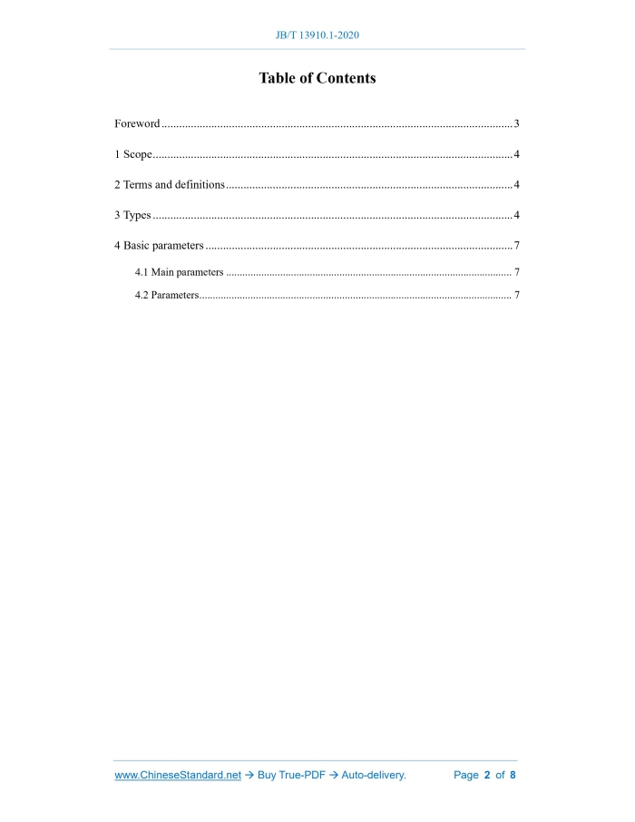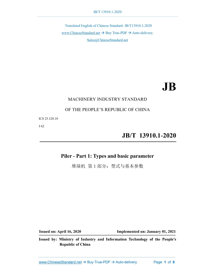JB/T 13910.1-2020: Piler - Part 1: Types and basic parameter Delivery: 9 seconds. True-PDF full-copy in English & invoice will be downloaded + auto-delivered via email. See step-by-step procedure Status: Valid