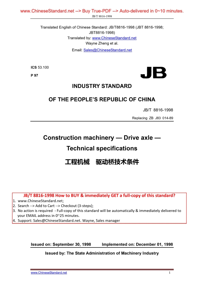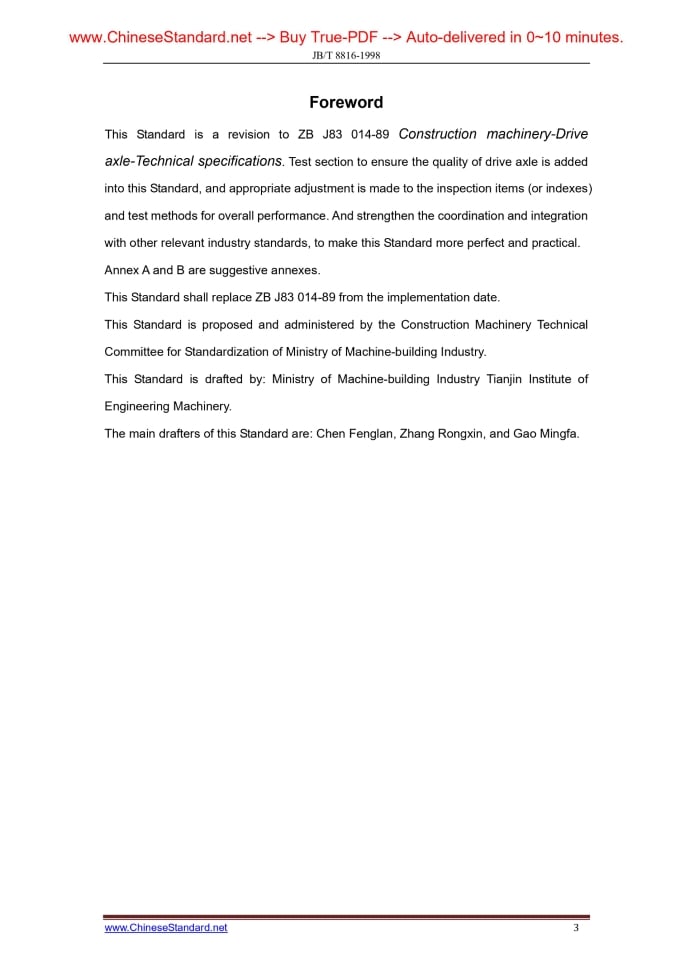 JB/T 8816-1998: Construction machinery - Drive axle - Technical specifications Delivery: 9 seconds. True-PDF full-copy in English & invoice will be downloaded + auto-delivered via email. See step-by-step procedure Status: Obsolete JB/T 8816: Historical versions