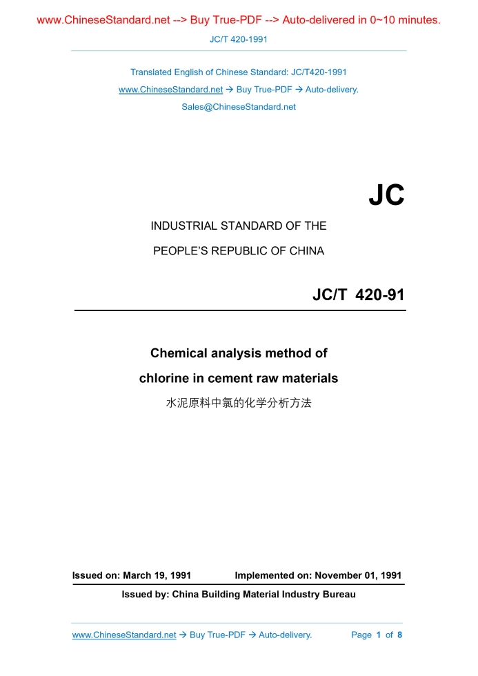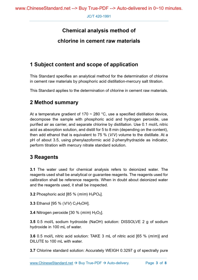 JC/T 420-1991: Chemical analysis method of chlorine in cement raw material Delivery: 9 seconds. True-PDF full-copy in English & invoice will be downloaded + auto-delivered via email. See step-by-step procedure Status: Obsolete