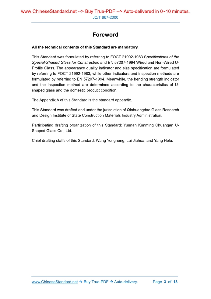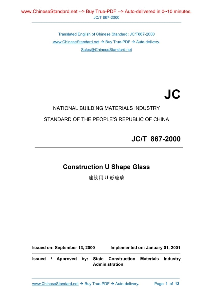JC/T 867-2000: Construction U shape glass Delivery: 9 seconds. True-PDF full-copy in English & invoice will be downloaded + auto-delivered via email. See step-by-step procedure