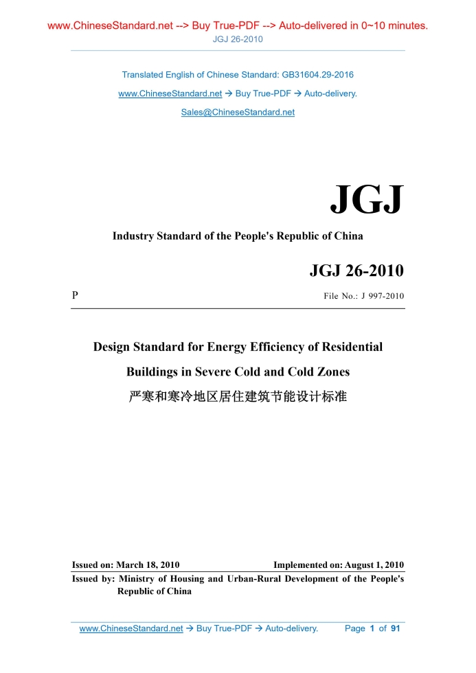 JGJ26-2010: Design standard for energy efficiency of residential buildigns in severe cold and cold zones Delivery: 9 seconds. True-PDF full-copy in English & invoice will be downloaded + auto-delivered via email. See step-by-step procedure Status: Obsolete JGJ26: Historical versions