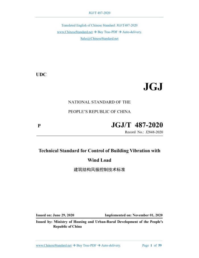 JGJT487-2020: Technical standard for control of building vibration with wind load Delivery: 9 seconds. True-PDF full-copy in English & invoice will be downloaded + auto-delivered via email. See step-by-step procedure Status: Valid