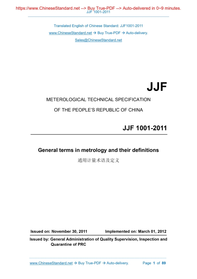 JJF 1001-2011: General Terms in Metrology and Their Definitions Delivery: 9 seconds. True-PDF full-copy in English & invoice will be downloaded + auto-delivered via email. See step-by-step procedure Status: Valid JJF 1001: Historical versions