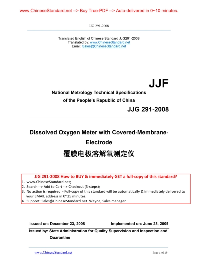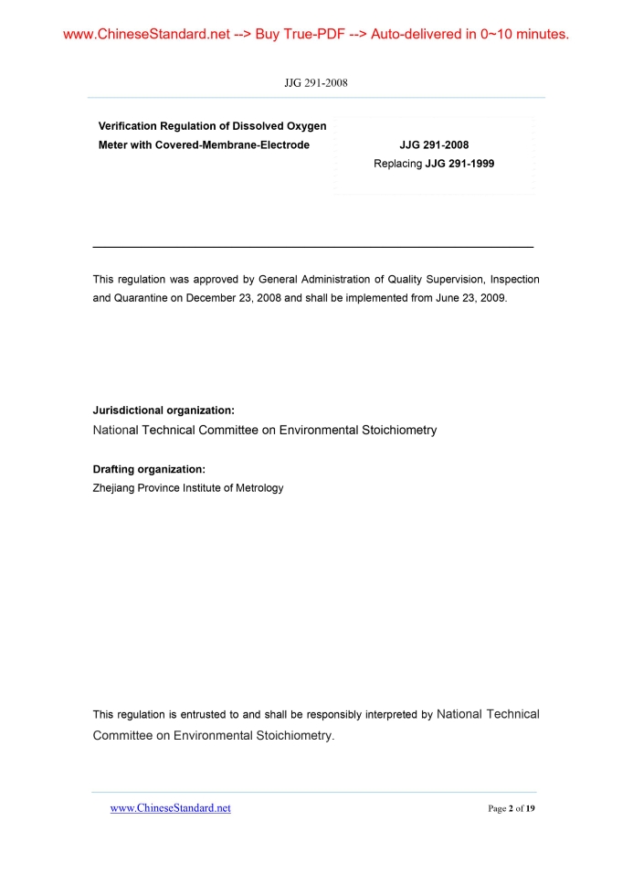 JJG 291-2008: Verification regulation of dissolved oxygen meter with covered-membrane-electrode Delivery: 9 seconds. True-PDF full-copy in English & invoice will be downloaded + auto-delivered via email. See step-by-step procedure Status: Obsolete JJG 291: Historical versions