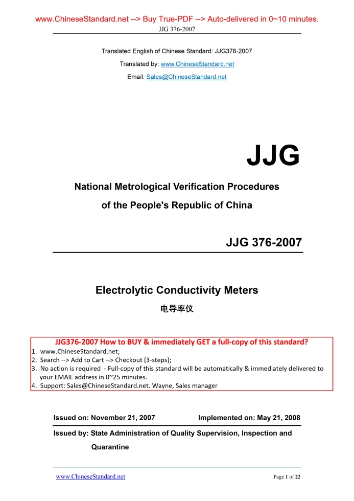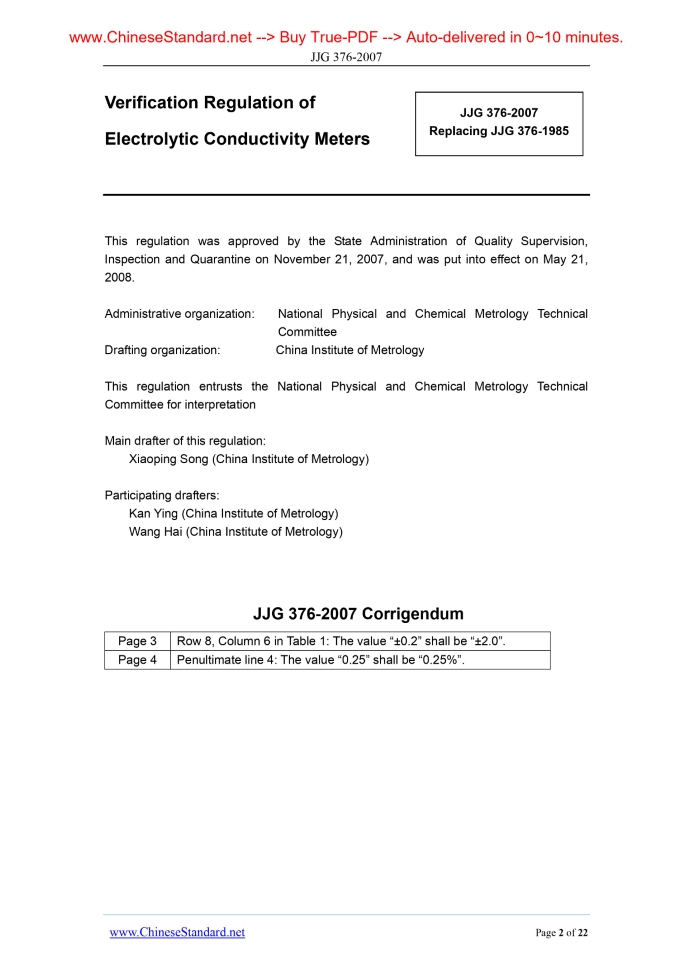 JJG 376-2007: Verification Regulation of Electrolytic Conductivity Meters Delivery: 9 seconds. True-PDF full-copy in English & invoice will be downloaded + auto-delivered via email. See step-by-step procedure Status: Valid JJG 376: Historical versions