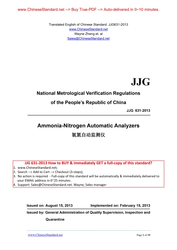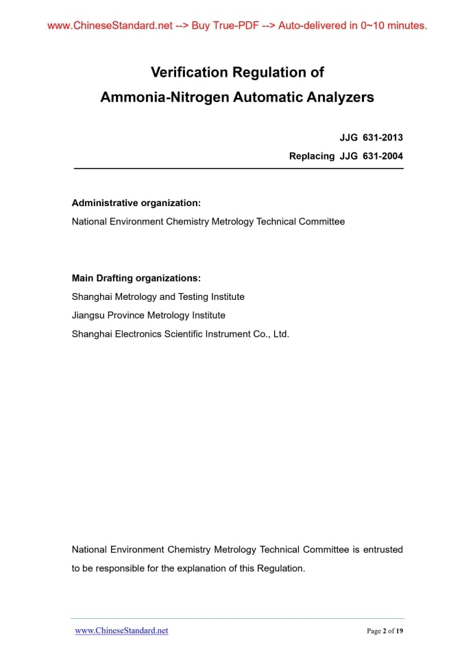 JJG 631-2013: Verification Regulation of Ammonia-Nitrogen Automatic Analyzers Delivery: 9 seconds. True-PDF full-copy in English & invoice will be downloaded + auto-delivered via email. See step-by-step procedure Status: Valid JJG 631: Historical versions