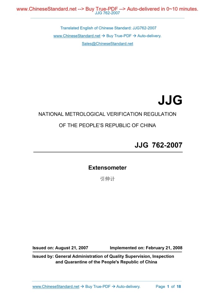JJG 762-2007: Extensometer Delivery: 9 seconds. True-PDF full-copy in English & invoice will be downloaded + auto-delivered via email. See step-by-step procedure Status: Valid JJG 762: Historical versions