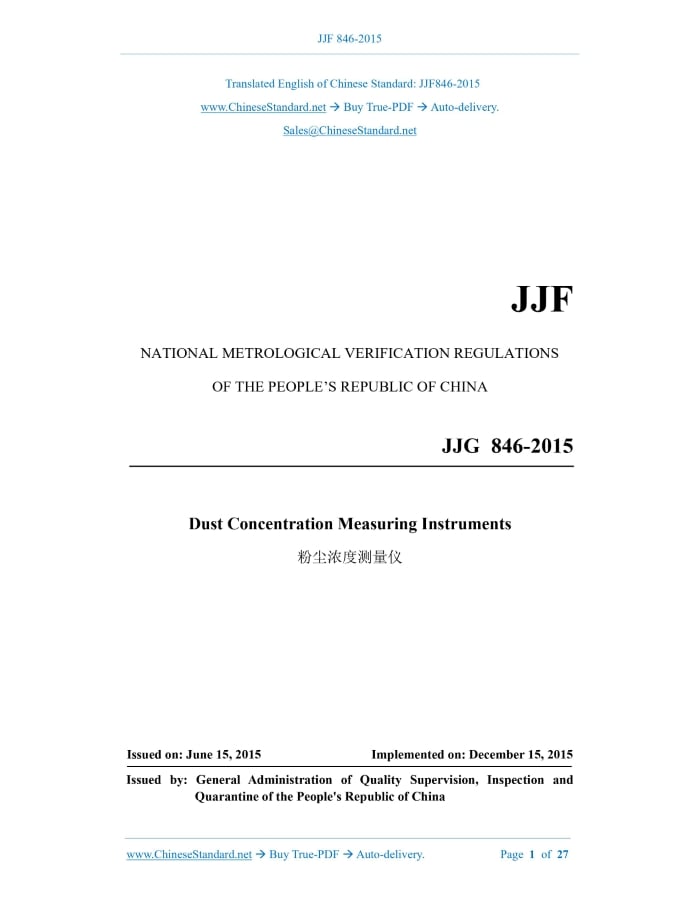 JJG 846-2015: Dust Concentration Measuring Instruments Delivery: 9 seconds. True-PDF full-copy in English & invoice will be downloaded + auto-delivered via email. See step-by-step procedure Status: Valid JJG 846: Historical versions