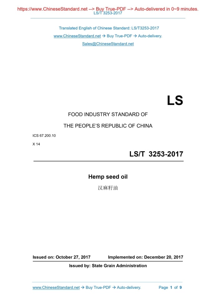 LST3253-2017: Hemp seed oil Delivery: 9 seconds. True-PDF full-copy in English & invoice will be downloaded + auto-delivered via email. See step-by-step procedure Status: Valid