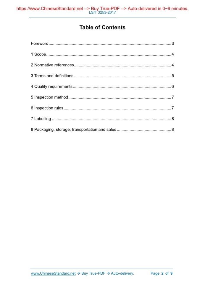 LST3253-2017: Hemp seed oil---This is an excerpt. Full copy of true-PDF in English version (including equations, symbols, images, flow-chart, tables, and figures etc.), auto-downloaded/delivered in 9 seconds, can be purchased online: https://www.ChineseStandard.net/PDF.aspx/LST3253-2017LS FOOD INDUSTRY STANDARD OF THE PEOPLE’S REPUBLIC OF CHINA ICS 67.200.10 X 14 Hemp seed oil 汉麻籽油 ISSUED ON: OCTOBER 27, 2017 IMPLEMENTED ON: DECEMBER 20, 2017 Issued by: State Grain Administration Table of ContentsForeword ... 3 1 Scope ... 4 2 Normative references ... 4 3 Terms and definitions ... 5 4 Quality requirements ... 6 5 Inspection method ... 7 6 Inspection rules ... 7 7 Labelling ... 8 8 Packaging, storage, transportation and sales ... 8 Hemp seed oil1 ScopeThis Standard specifies the terms and definitions, quality requirements, inspection methods, inspection rules, labeling, packaging, storage, transportation and sales requirements of hemp seed oil. This Standard applies to commercial hemp seed oil which is prepared by pressing and other methods for human consumption.2 Normative referencesThe following documents are indispensable for the application of this document. For dated references, only the dated version applies to this document. For undated references, the latest edition (including all amendments) applies to this document. GB/T 191, Packaging - Pictorial marking for handling of goods GB 2716, Hygienic standard for edible vegetable oil GB 2760, National Food Safety Standard - Standards for Uses of Food Additives GB 2761, National Food Safety Standards - Maximum levels of mycotoxins in foods GB 2762, National food safety standard - Maximum levels of contaminants in foods GB 2763, National food safety standard - Maximum residue limits for pesticides in food GB 5009.168, National Food Safety Standard - Determination of Fatty Acid in Foods GB 5009.227, National Food Safety Standard - Determination of peroxide value in food GB 5009.229, National Food Safety Standard - Determination of Acid Value in food GB 5009.236, National Food Safety Standard - Animal and Vegetable Fats and Oils - Determination of Moisture and Volatile Matter GB/T 5524, Animal and vegetable fats and oils - Sampling GB/T 5525, Vegetable fats and oils - Method for identification of transparency odor and flavor GB/T 5526, Inspection of vegetable oils - Methods for determination of specific gravity GB/T 5527, Animal and vegetable fats and oils - Determination of refractive index GB/T 5532, Animal and vegetable fats and oils - Determination of iodine value GB 7718, National Food Safety Standard - Standard for nutrition labelling of prepackaged foods GB/T 15688, Animal and vegetable fats and oils - Determination of insoluble impurities content GB/T 17374, Sales package of edible vegetable oil GB/T 22460, Animal and vegetable fats and oils - Determination of lovibond colour GB 28050, Nutrition Label Standards of Pre-packaged Food GB/T 30354, Criterion for Bulk Transportation of Edible Vegetable Oils Administrative Measures on Metrological Supervision of Quantitatively Packed Commodities (General Administration of Quality Supervision, Inspection and Quarantine of the People's Republic of China order [2005] No. 75)3 Terms and definitionsThe following terms and definitions are applicable to this document. 3.1 Hemp An annual herb of Cannabis Sativa L., Cannabis, Cannabinaceae, Urticales, Magnoliopsida, also known as cannabis, xianma, kuima, hanma and marijuana. 3.2 Hemp seed oil Also known as cannabis oil. It refers to the finished oil for human consumption that is obtained by pressing the grains of hemp plant as the raw material, which meets the requirements of food safety and quality. 4.3.2 The variety and amount of food additives shall comply with the provisions of GB 2760; however, neither flavors and fragrances, nor non-edible substances shall be added. 4.3.3 The limit of mycotoxins shall meet the requirements of GB 2761. 4.3.4 The limit of contaminants shall meet the requirements of GB 2762. 4.3.5 The limit of pesticide residues shall comply with GB 2763 and related regulations.5 Inspection method5.1 Sampling and sub-sampling: perform according to GB/T 5524. 5.2 Transparency, odor and flavor inspection: perform according to GB/T 5525. 5.3 Color inspection: perform according to GB/T 22460. 5.4 Relative density inspection: perform according to GB/T 5526. 5.5 Refractive index inspection: perform according to GB/T 5527. 5.6 Moisture and volatile matter inspection: perform according to GB 5009.236. 5.7 Insoluble impurities inspection: perform according to GB/T 15688. 5.8 Acid value inspection: perform according to GB 5009.229. 5.9 Iodine value inspection: perform according to GB/T 5532. 5.10 Peroxide value inspection: perform according to GB 5009.227. 5.11 Fatty acid composition inspection: perform according to GB 5009.168.6 Inspection rules6.1 Sampling Perform according to the requirements of GB/T 5524. 6.2 Delivery inspection 6.2.1 Perform the inspection batch by batch; issue an inspection report. 6.2.2 Inspect according to 5.1. 6.3 Type inspection ......Source: Above contents are excerpted from the full-copy PDF -- translated/reviewed by: www.ChineseStandard.net / Wayne Zheng et al. Tips & Frequently Asked Questions:Question 1: How long will the true-PDF of English version of LST3253-2017 be delivered?Answer: The full copy PDF of English version of LST3253-2017 can be downloaded in 9 seconds, and it will also be emailed to you in 9 seconds (double mechanisms to ensure the delivery reliably), with PDF-invoice.Question 2: Can I share the purchased PDF of LST3253-2017_English with my colleagues?Answer: Yes. The purchased PDF of LST3253-2017_English will be deemed to be sold to your employer/organization who actually paid for it, including your colleagues and your employer's intranet.Question 3: Does the price include tax/VAT?Answer: Yes. Our tax invoice, downloaded/delivered in 9 seconds, includes all tax/VAT and complies