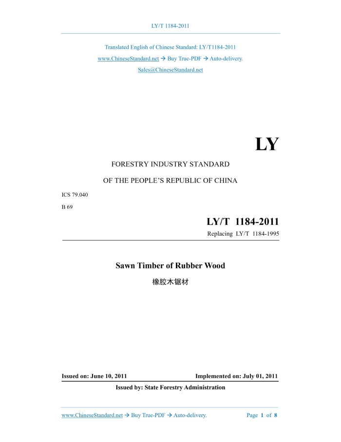 LY/T 1184-2011: Sawn timber of rubber wood Delivery: 9 seconds. True-PDF full-copy in English & invoice will be downloaded + auto-delivered via email. See step-by-step procedure Status: Valid LY/T 1184: Historical versions
