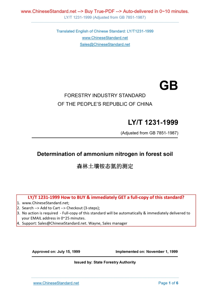 LY/T 1231-1999: Determination of ammonium nitrogen in forest soil Delivery: 9 seconds. True-PDF full-copy in English & invoice will be downloaded + auto-delivered via email. See step-by-step procedure Status: Obsolete