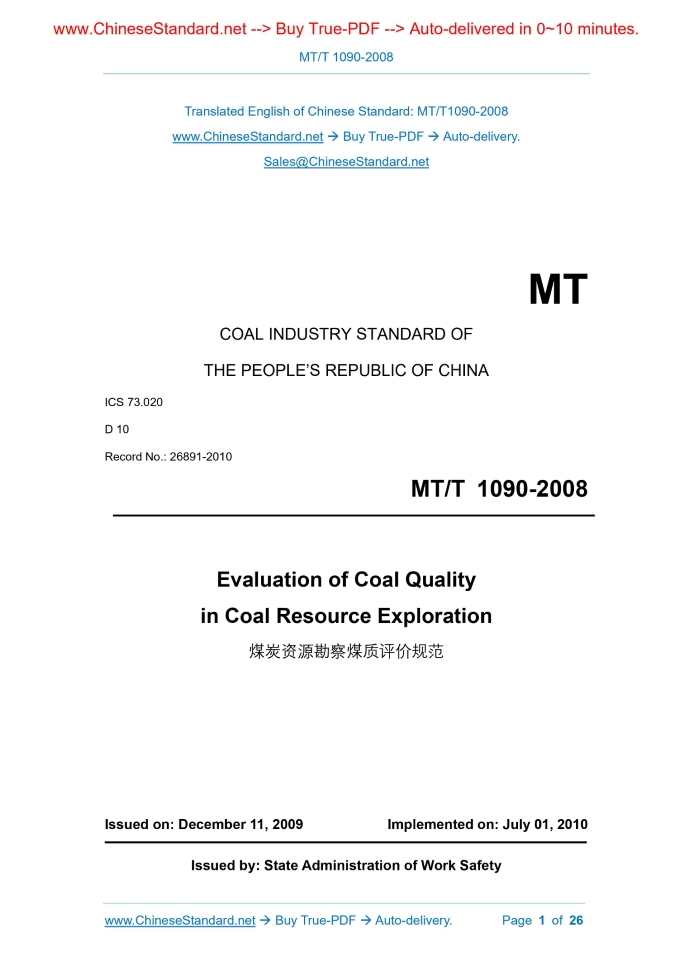 MT/T 1090-2008: Evaluation of Coal Quality in Coal Resource Exploration Delivery: 9 seconds. True-PDF full-copy in English & invoice will be downloaded + auto-delivered via email. See step-by-step procedure Status: Valid
