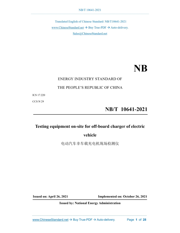 NB/T 10641-2021: Testing equipment on-site for off-board charger of electric vehicle Delivery: 9 seconds. True-PDF full-copy in English & invoice will be downloaded + auto-delivered via email. See step-by-step procedure Status: Valid