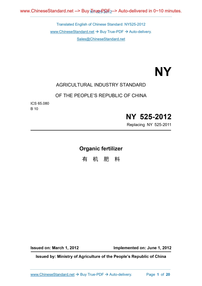 NY 525-2012: Organic fertilizer Delivery: 9 seconds. True-PDF full-copy in English & invoice will be downloaded + auto-delivered via email. See step-by-step procedure Status: Obsolete NY 525: Historical versions