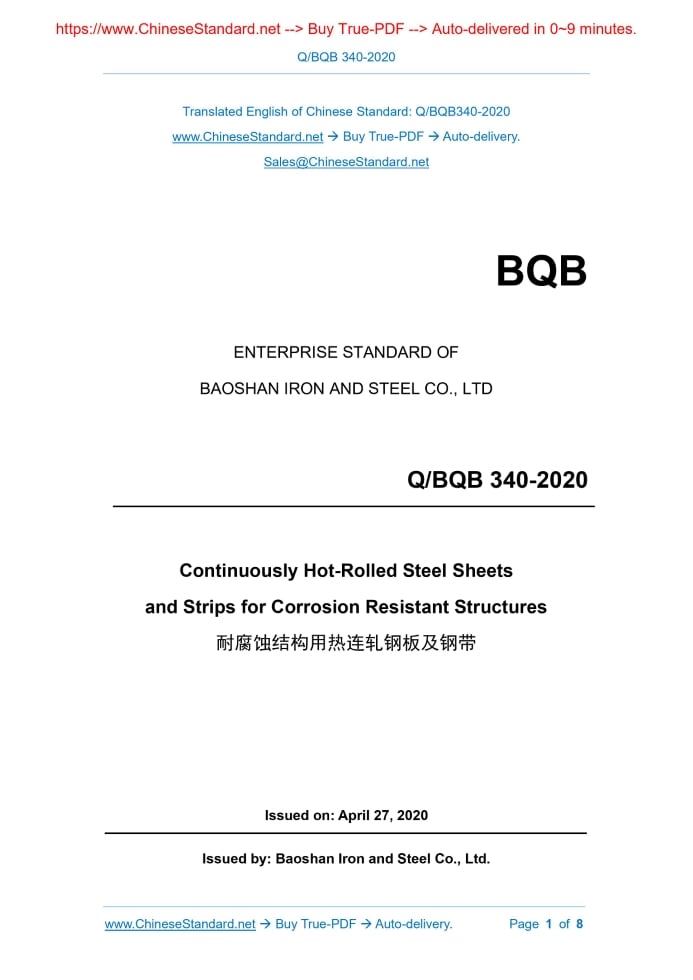 Q/BQB 340-2020: Continuously-hot-rolled steel sheets and strips for corrosion resistant structures Delivery: 9 seconds. True-PDF full-copy in English & invoice will be downloaded + auto-delivered via email. See step-by-step procedure Q/BQB 340: Historical versions