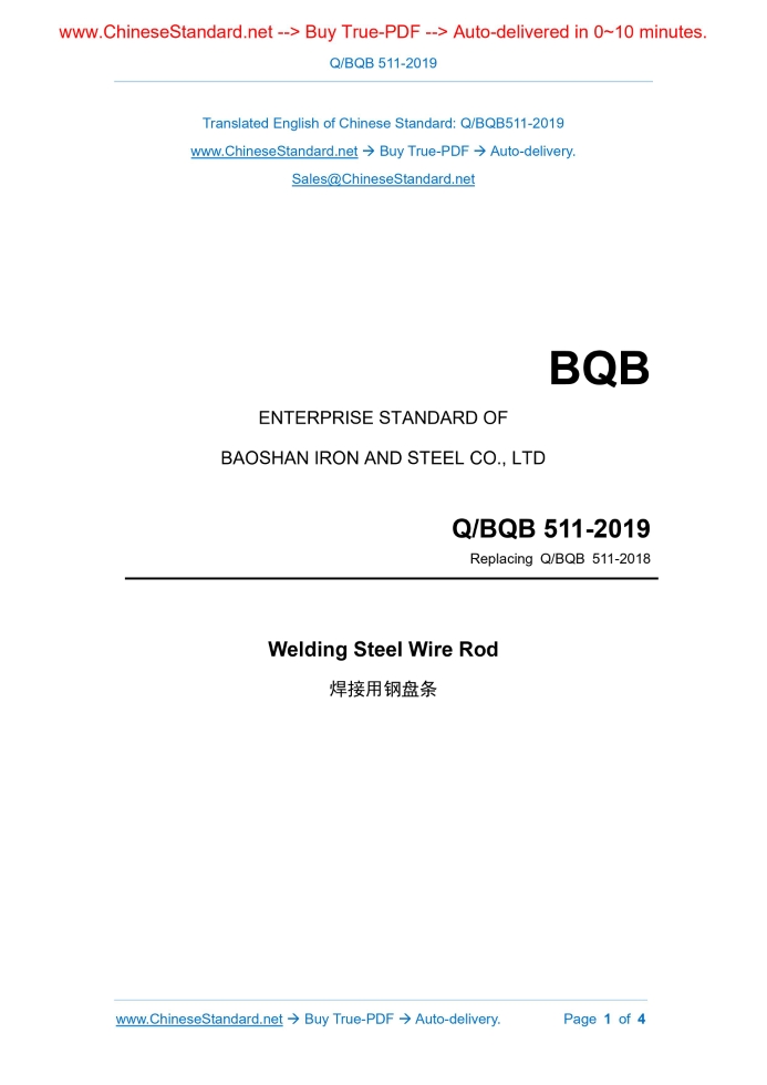 Q/BQB 511-2019: Welding Steel Wire Rod Delivery: 9 seconds. True-PDF full-copy in English & invoice will be downloaded + auto-delivered via email. See step-by-step procedure Q/BQB 511: Historical versions