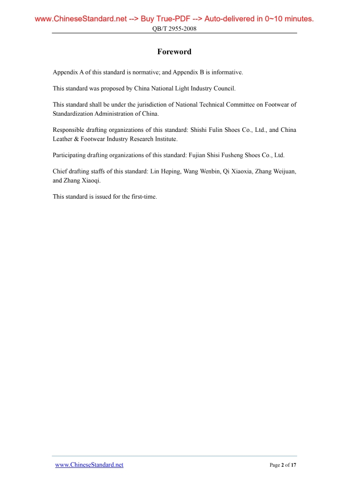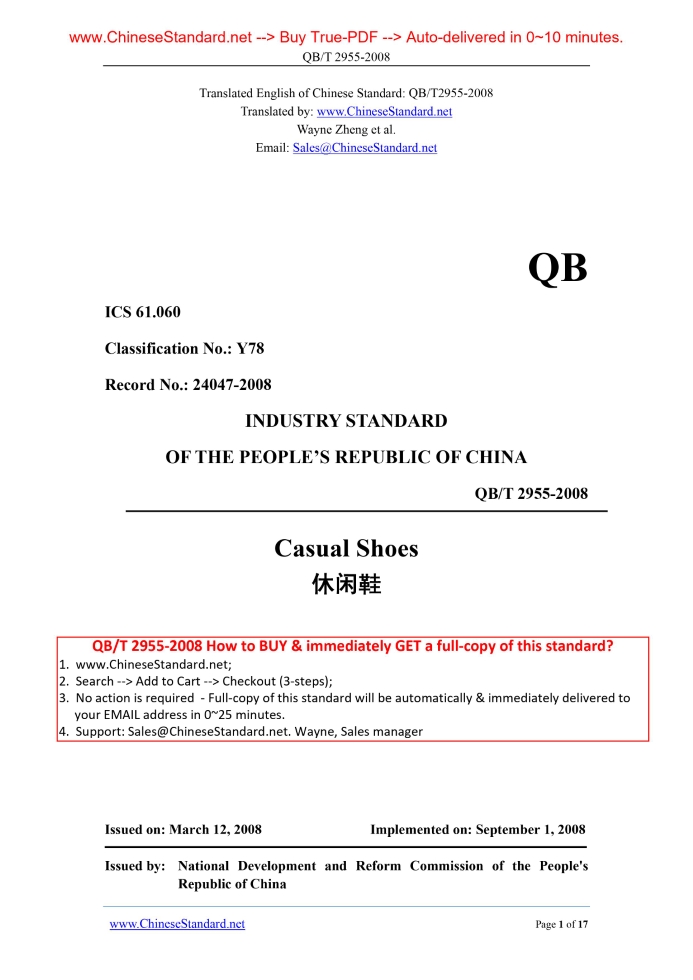 QB/T 2955-2008: Casual shoes Delivery: 9 seconds. True-PDF full-copy in English & invoice will be downloaded + auto-delivered via email. See step-by-step procedure Status: Obsolete QB/T 2955: Historical versions