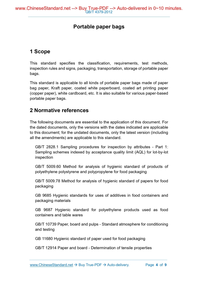 QB/T 4379-2012: Portable paper bags Delivery: 9 seconds. True-PDF full-copy in English & invoice will be downloaded + auto-delivered via email. See step-by-step procedure Status: Obsolete QB/T 4379: Historical versions