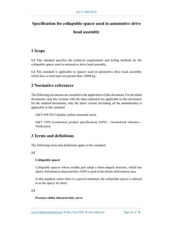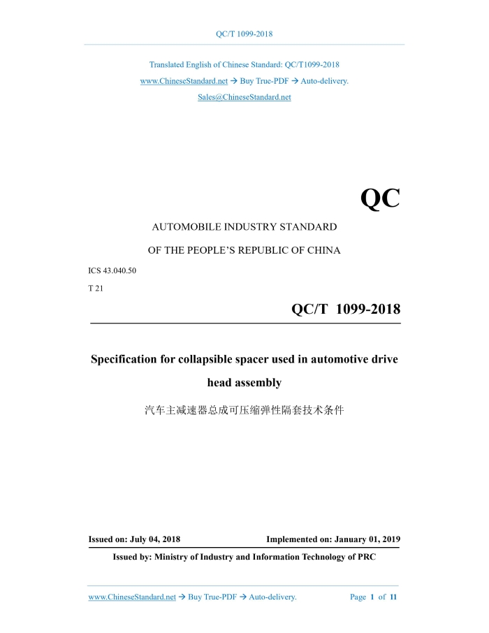 QC/T 1099-2018: Specification for collapsible spacer used in automotive drive head assembly Delivery: 9 seconds. True-PDF full-copy in English & invoice will be downloaded + auto-delivered via email. See step-by-step procedure Status: Valid