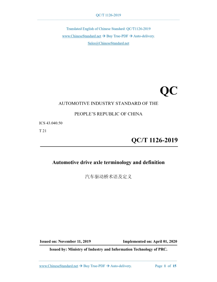 QC/T 1126-2019: Automotive drive axle terminology and definition Delivery: 9 seconds. True-PDF full-copy in English & invoice will be downloaded + auto-delivered via email. See step-by-step procedure Status: Valid
