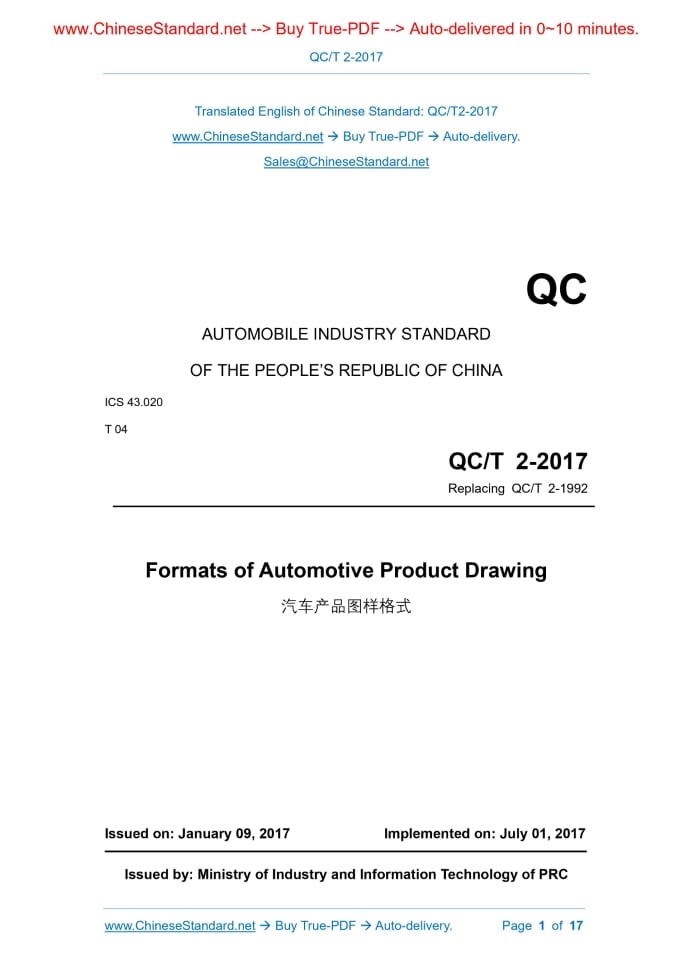 QC/T 2-2017: Formats of Automotive Product Drawing Delivery: 9 seconds. True-PDF full-copy in English & invoice will be downloaded + auto-delivered via email. See step-by-step procedure Status: Valid QC/T 2: Historical versions
