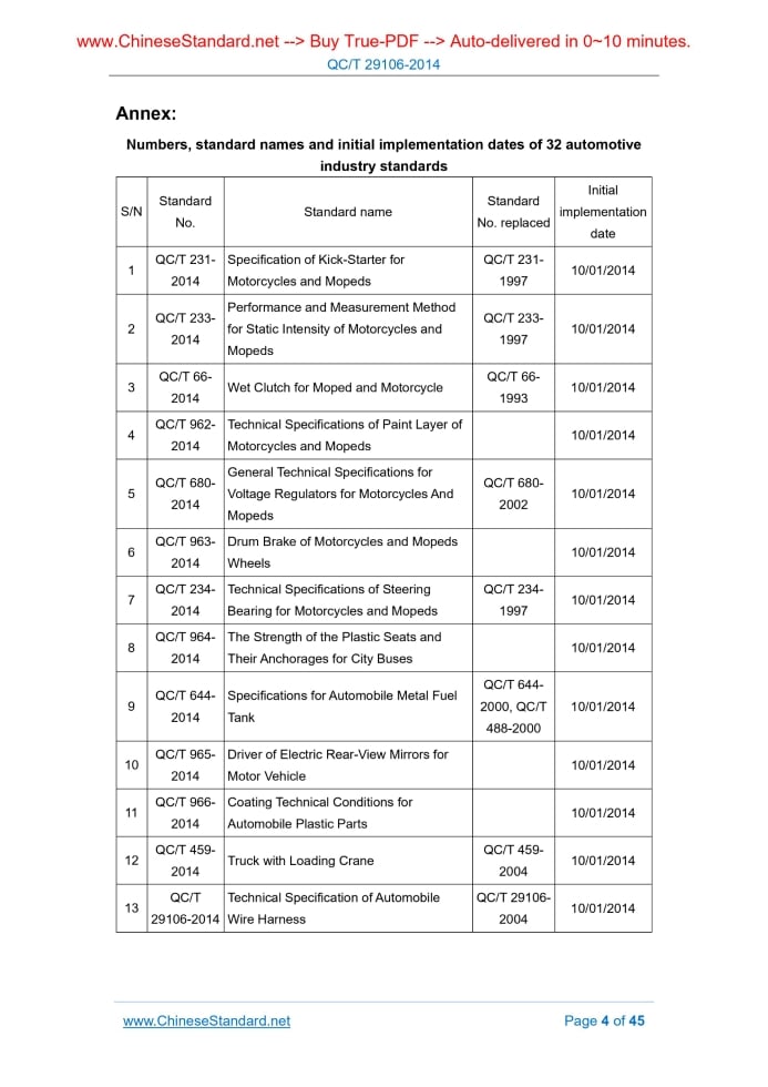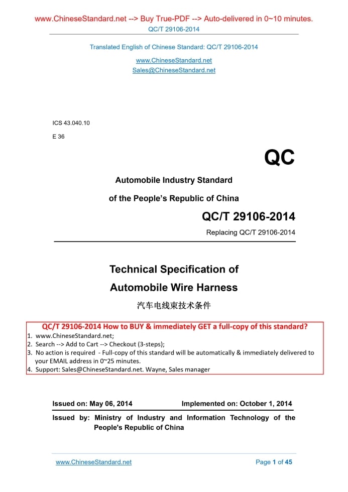 QC/T 29106-2014: Technical Specification of Automobile Wire Harness Delivery: 9 seconds. True-PDF full-copy in English & invoice will be downloaded + auto-delivered via email. See step-by-step procedure Status: Valid QC/T 29106: Historical versions