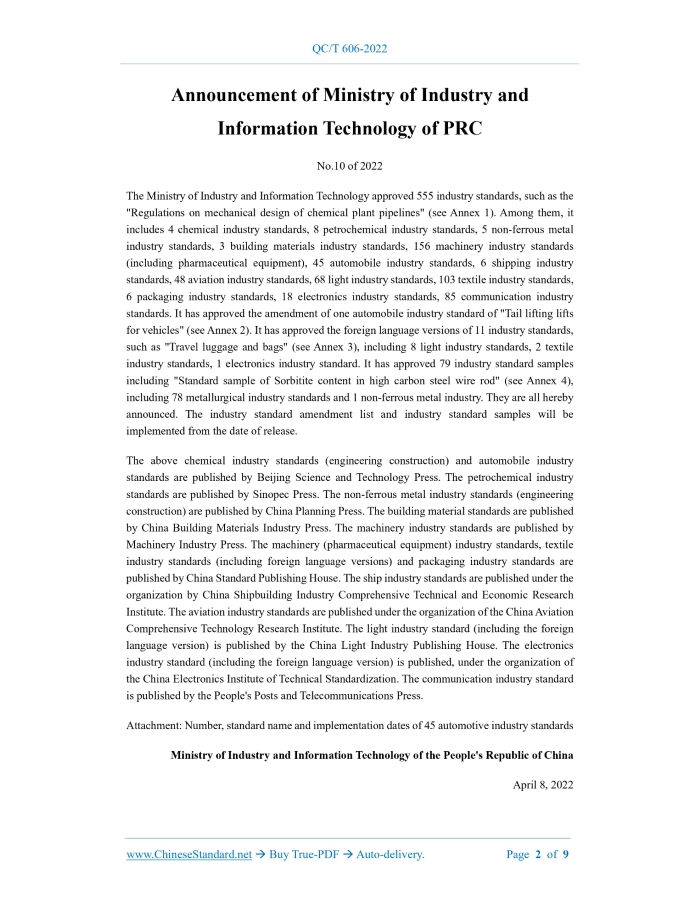 QC/T 606-2022 PDF EnglishUS$70.00 · In stock · Download in 9 seconds