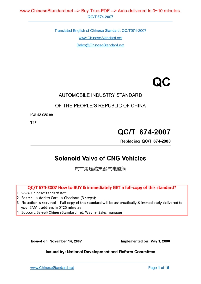 QC/T 674-2007: Solenoid valve of CNG vehicles Delivery: 9 seconds. True-PDF full-copy in English & invoice will be downloaded + auto-delivered via email. See step-by-step procedure Status: Obsolete QC/T 674: Historical versions