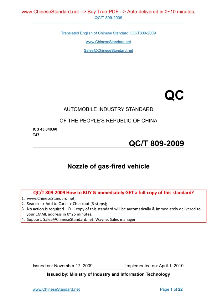 QC/T 809-2009: Nozzle of gas-fired vehicle Delivery: 9 seconds. True-PDF full-copy in English & invoice will be downloaded + auto-delivered via email. See step-by-step procedure Status: Valid