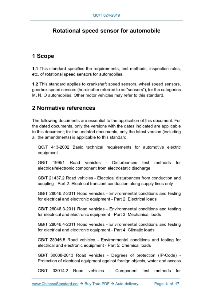 Question 1: How long will the true-PDF of English version of QC/T 824-2019 be delivered?Answer: The full copy PDF of English version of QC/T 824-2019 can be downloaded in 9 seconds, and it will also be emailed to you in 9 seconds (double mechanisms to ensure the delivery reliably), with PDF-invoice.