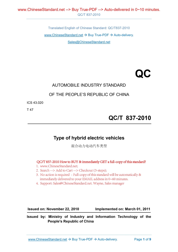 QC/T 837-2010: Types of hybrid electric vehicles Delivery: 9 seconds. True-PDF full-copy in English & invoice will be downloaded + auto-delivered via email. See step-by-step procedure Status: Valid