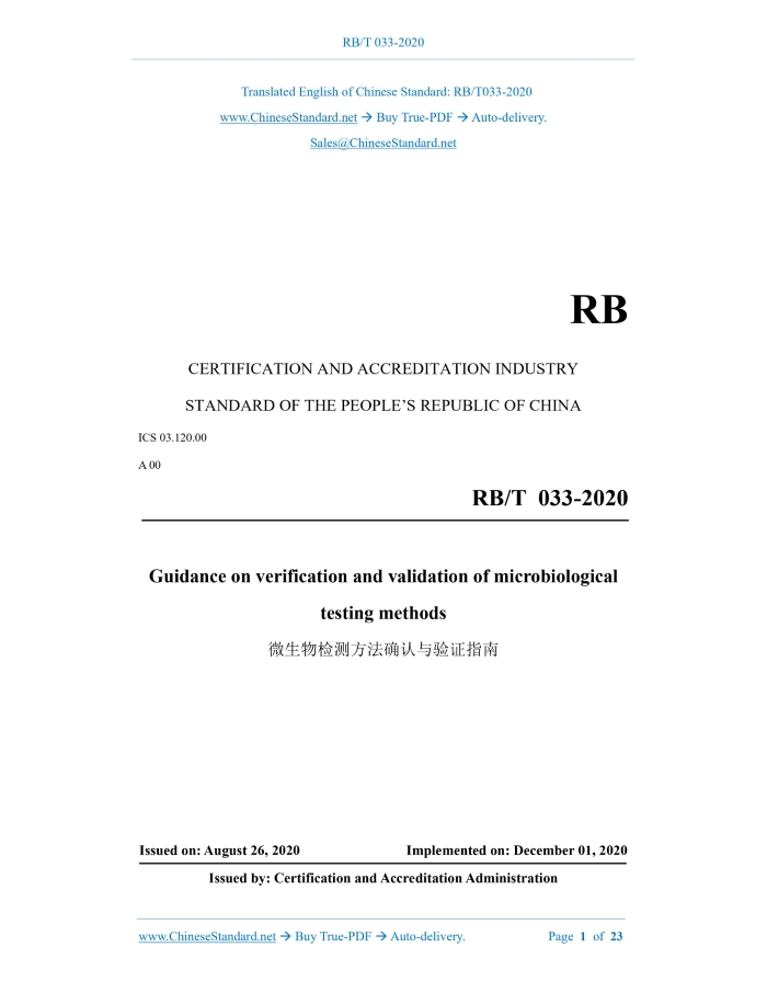 RB/T 033-2020: Guidance on verification and validation of microbiological testing methods Delivery: 9 seconds. True-PDF full-copy in English & invoice will be downloaded + auto-delivered via email. See step-by-step procedure Status: Valid