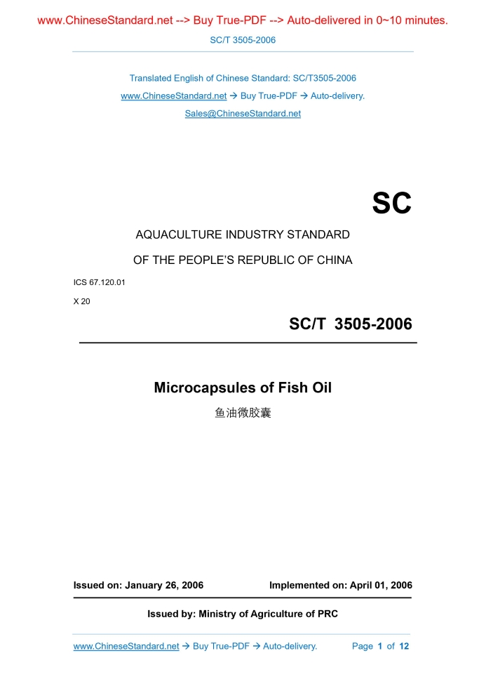 SC/T 3505-2006: Microcapsules of Fish Oil Delivery: 9 seconds. True-PDF full-copy in English & invoice will be downloaded + auto-delivered via email. See step-by-step procedure Status: Valid