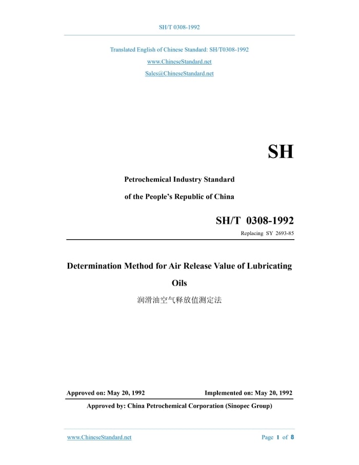 SH/T 0308-1992: Determination Method for Air Release Value of Lubricating oils Delivery: 9 seconds. True-PDF full-copy in English & invoice will be downloaded + auto-delivered via email. See step-by-step procedure