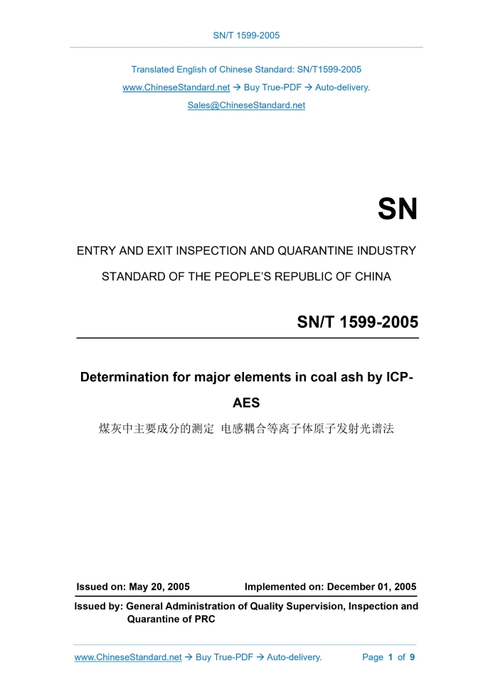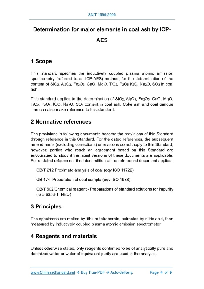 SN/T 1599-2005: Determination for major elements in coal ash by ICP-AES Delivery: 9 seconds. True-PDF full-copy in English & invoice will be downloaded + auto-delivered via email. See step-by-step procedure Status: Valid