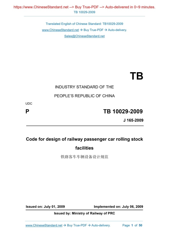 TB 10029-2009: Code for design of railway passenger car rolling stock facilities Delivery: 9 seconds. True-PDF full-copy in English & invoice will be downloaded + auto-delivered via email. See step-by-step procedure Status: Obsolete TB 10029: Historical versions
