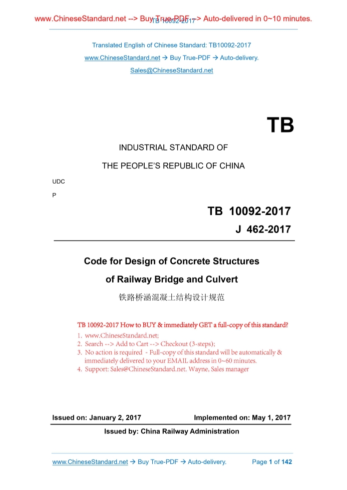 TB 10092-2017: Code for Design of Concrete Structures of Railway Bridge and Culvert Delivery: 9 seconds. True-PDF full-copy in English & invoice will be downloaded + auto-delivered via email. See step-by-step procedure Status: Valid