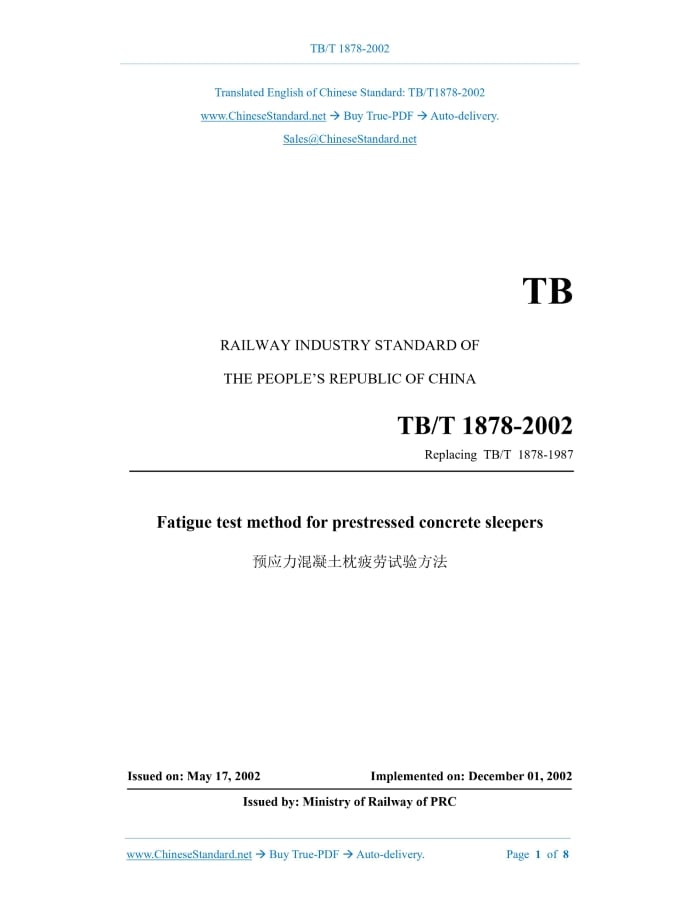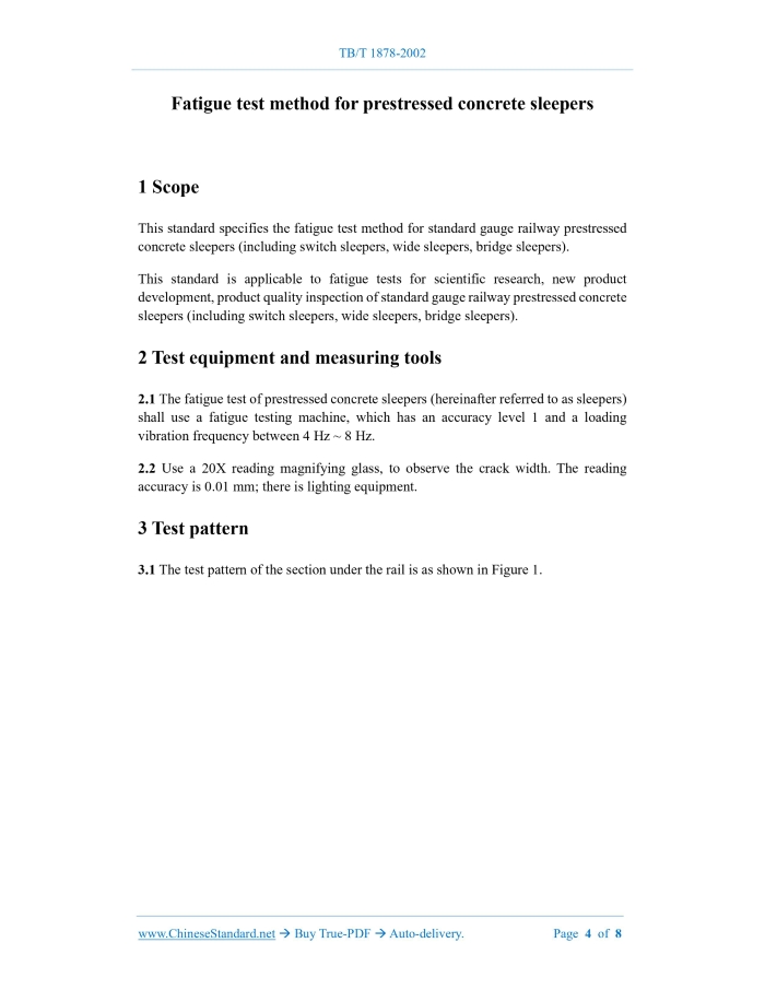TB/T 1878-2002: Prestressed concrete sleeper fatigue test methods Delivery: 9 seconds. True-PDF full-copy in English & invoice will be downloaded + auto-delivered via email. See step-by-step procedure Status: Valid TB/T 1878: Historical versions